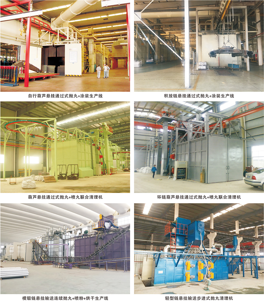 工艺简介:悬挂通过式抛丸清理机主要用于结构件、大批量多品种产品等工件的表面处理,用途广泛,清理工件品种多,效果好,操作简便,环保等各项指标均符合国家标准,适用于重型结构件的批量生产。